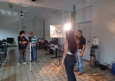 A oficina de produção audiovisual realizada em Fernandópolis foi um grande sucesso. O evento, patrocinado pela Prefeitura Municipal de Fernandópolis, pelo Ministério da Cultura e pelo Governo Federal através da Lei Paulo Gustavo, reuniu tanto iniciantes quanto profissionais da área na Biblioteca Municipal. Durante a oficina, foram abordados os fundamentos da linguagem cinematográfica, produção e desenvolvimento de elencos. O ponto alto foi a criação de um roteiro para o curta-metragem intitulado "Mistério do Paredão - Eclipse", cuja locação é o mirante do Paredão, um ponto turístico de destaque em Fernandópolis, SP. Ao final, os alunos entusiasmado se comprometeram a continuar participando do desenvolvimento do projeto, que será estendido com as fases de produção, pós-produção e exibição do filme, garantindo uma experiência completa e enriquecedora para todos os envolvidos.
