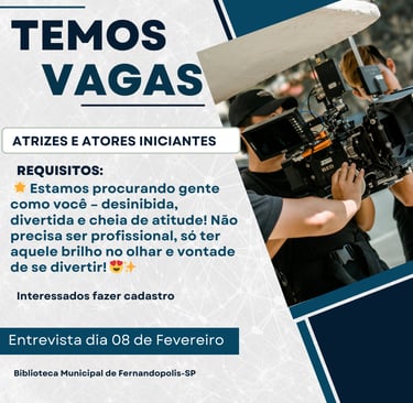 Caso não consiga comparecer na data do casting, não se preocupe! O cadastro continuará disponível, pois outros dois curta-metragens já estão programados para gravação.